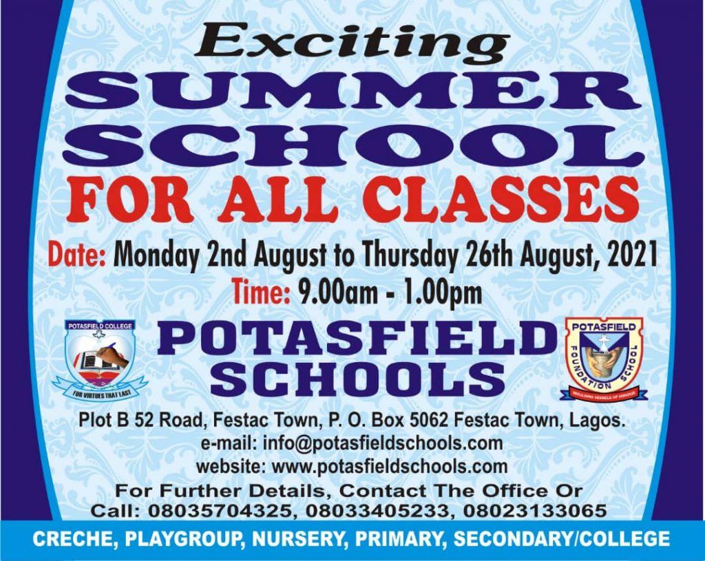 On behalf of the Management and Staff of Potasfield Foundation School, we wish our dear parents a Wonderful Summer Holiday.